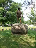 | 1938 | Traffic island at the intersection of Plymouth Avenue and Pleasant Street | Fall River | Massachusetts | 41°41′51″N 71°8′49″W | The base upon which statue stands is formed from the top of a column from the demolished Fall River Customs House and Post Office set on a slab of Fall River granite. In 1983, the local and state historical commissions nominated the statue for the National Register of Historic Places, but the listing was rejected.[14] | ![]() |