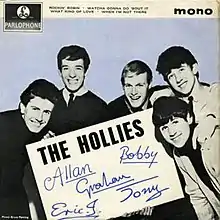 The Hollies is the first EP by The Hollies. It was put out by Parlophone in mono with the catalogue number GEP 8909 and released in the UK in early June 1964. The EP entered the British charts on 6 June 1964 and spent 8 weeks there, peaking at #8 on the Record Retailer chart.[2]