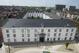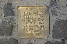 On 23 October 1940, the German Military Administration adopted anti-Jewish legislation for the first time.[9] The new laws, similar to the Nuremberg Laws adopted in Germany in 1935, coincided with the adoption of similar legislation in the Netherlands and in France.[9] The laws of 28 October forbade Jews to practice certain professions (including the civil service) and forced Jews to register with their local municipality.[10] On the same date, the German administration announced a definition of who was regarded as Jewish. Jewish-owned shops or businesses had to be marked by a sign in the window, and Jewish-owned economic assets had to be registered.[10] From June 1940, a list of Jewish businesses had already been drawn up in Liège.[11]