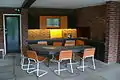 As post-War years meant no staff, Gwynne installed a pool and converted the servants' quarters to an entertainment/relaxation centre which relocated this function from the roof (rooftop entertaining being a 1930s custom that favoured flat roofs) to the grounds, making access easier for the purpose.
