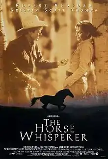 The Horse Whisperer is a 1998 American Western drama film directed by and starring Robert Redford, based on the 1995 novel The Horse Whisperer by Nicholas Evans. Redford plays the title role, a talented trainer with a remarkable gift for understanding horses, who is hired to help an injured teenager (played by Scarlett Johansson) and her horse back to health following a tragic accident.