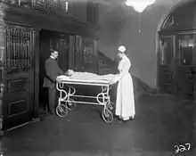 During 1875, an eleven-room house was rented for $320 a year by a Toronto women's bible study group led by Elizabeth McMaster.[2] Opened on March 1,[3] they set up six iron cots and "declared open a hospital 'for the admission and treatment of all sick children.'" Their first patient, a scalding victim named Maggie, came in on April 3. Forty-four patients were admitted to the hospital in its first year of operation and sixty-seven others were treated in outpatient clinics.[4]