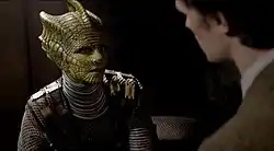 Alaya talks to the Doctor. This episode featured redesigned Silurians, the reception of which was mixed. | |||