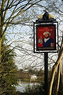 The Jolly Sailor is an 18th-century public house on Land's End Road in Bursledon in Hampshire, England. It has been listed Grade II on the National Heritage List for England since December 1955.[1] The pub can be approached on foot or by boat via a pontoon onto the River Hamble.[2] The pub faces Swanwick Marina across the water.[3] It is owned by Hall and Woodhouse brewery.[3]