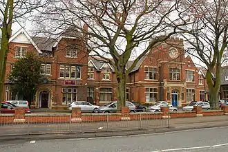 King's was unusual in once being a grammar school that took boarders, all in School House.[13] Many boarders had parents in the Forces and or the Colonial Services; the very low fees[14] being more affordable than at public schools. The accommodation at 201/203 Park Road (which is now the Music School[15]) was affectionately known as "The Pig",[16] as it was said to have once been the "Pig & Whistle" pub. The building was originally called, and is once more known by those at the school as Madeley House,[15] after Madeley Manor in Shropshire,[17] the family home of Reverend Charles Richard Ball,[18] the original owner of the building.[17]