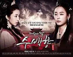 The King's Daughter, Soo Baek-hyang (Korean: 제왕의 딸, 수백향; RR: Je-wang-ui ttal, Su Baek-hyang is a Korean-language historical drama depicting the life of Soo Baek-hyang, the daughter of King Muryeong of Baekje. 108 episodes were broadcast on the Munhwa Broadcasting Corporation (MBC) network from September 30, 2013, to March 14, 2014, on Monday and Friday at 20:55 (11:55 GMT).[1][2] The series was scheduled have 120 episodes, but it was reduced to 108 on March 4, 2014.[2]