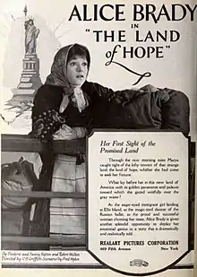 The Land of Hope is a lost[1] 1921 American drama film directed by Edward H. Griffith and written by Fred Myton. The film stars Alice Brady, Jason Robards Sr., Ben Hendricks Jr., Schuyler Ladd, Larry Wheat, and Martha McGraw. The film was released in July 1921, by Realart Pictures Corporation.[2][3][4]