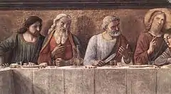 The Last Supper (1480) is a fresco depicting the Last Supper of Jesus by the Italian Renaissance artist Domenico Ghirlandaio; it is located in the refectory of the Convent of the Ognissanti on Borgo Ognissanti #42 in central Florence, region of Tuscany, Italy. It is one of three Last Supper frescoes painted by Ghirlandaio in Florence, the others being for the Badia di Passignano (1476) and for the Cenacolo di San Marco (1486).