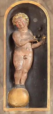 The quartet of figurines sculptured in marble, Pax, Gloria, Vanity, Labor exhibit primary thematic concerns and stylistic attributes of Northern Mannerist art, namely, portraiture of animated human movement, variety and multiplicity, often set in the Classical or mythological world, and inclined towards esoteric concepts.[1]