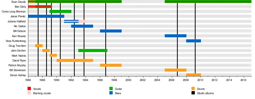 | Past members | Vess Ruhtenberg Corey Loog Brennan John Strohm Doug Trachten Jesse Peretz Devon Ashley Nic Dalton David Ryan Patrick Murphy Ben Daughtry Byron Hoagland Josh Lattanzi John Kent Mark "Budola" Newman Karl Alvarez Bill Stevenson P. David Hazel Kenny Lyon Mark Cutsinger Ben Deily Juliana Hatfield |