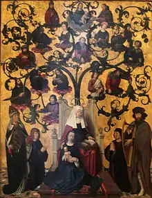 The Line of Saint Anne is a c.1500 oil on panel painting by Gerard David, now in the Museum of Fine Arts of Lyon, which acquired it in 1896. It shows the ancestors of Saint Anne, mother of the Virgin Mary, along the lines of a Tree of Jesse.