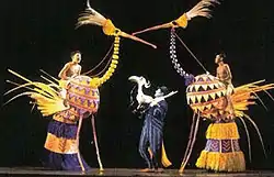 A Las Vegas production opened at Mandalay Bay on May 15, 2009, with previews beginning May 5, 2009.[20] The Las Vegas cast performed on the ninth season of the American dance competition Dancing With the Stars on September 23, 2009. Led by Buyi Zama, the cast performed Circle of Life.[21] When this production closed, on December 30, 2011, it turned into the second longest run the show had in a same American city (only coming after Broadway), running longer than the 2000–2003 Los Angeles Production.