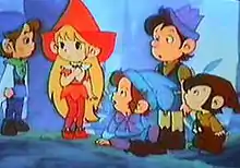 ![]() The children of The Littl' Bits, from left to right: Willibit, Lillabit, Snagglebit, Chip, Browniebit | |