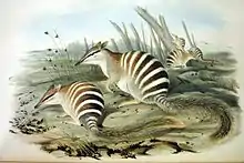 The publication of this major work by Gould followed his A Monograph of the Macropodidae or Family of Kangaroos in 1841.[2] This work was the first comprehensive survey of Australian mammals, and gave an account of their classification and description. Gould also included the indigenous names for the species from the lists he made while in Australia.[3] He used these names to make requests of the local peoples for his specimens, and recorded the regions where the names were used.[2] This conserved a number of common names, such as dibbler (Parantechinus apicalis), which were later recommended by authorities.