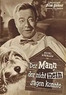 The Man Who Couldn't Say No (German: Der Mann, der nicht nein sagen konnte) is a 1958 comedy film directed by Kurt Früh and starring Heinz Rühmann, Hannelore Schroth and Siegfried Lowitz.[1] It represented an early co-production between the Danish company Rialto Film and the German distributor Constantin Film.