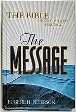 The Message: The Bible in Contemporary Language is a highly idiomatic translation of the Bible by Eugene H. Peterson published in segments from 1993 to 2002. It is a simplistic translation of the Bible's original languages.[1] The Message is a personal paraphrase of the Bible in English by Peterson from the original languages.[2] The contemporary American slang used in the translation deviates from a more neutral International English, and it falls on the extreme dynamic end of the dynamic and formal equivalence spectrum.