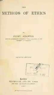 The Methods of Ethics is a book on ethics first published in 1874 by the English philosopher Henry Sidgwick.[1] The Stanford Encyclopedia of Philosophy indicates that The Methods of Ethics "in many ways marked the culmination of the classical utilitarian tradition." Noted moral and political philosopher John Rawls, writing in the Forward to the Hackett reprint of the 7th edition,[2] says Methods of Ethics "is the clearest and most accessible formulation of ... 'the classical utilitarian doctrine'". Contemporary utilitarian philosopher Peter Singer has said that the Methods "is simply the best book on ethics ever written."[3]