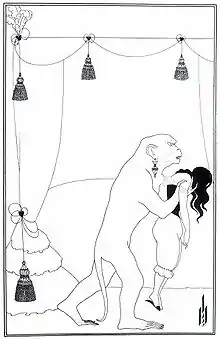 The tale has an underlying metaphor for the battle of brains vs. brawn. Physical strength, depicted as the orangutan as well as its owner, stand for violence: the orangutan is a murderer, while its owner admits he has abused the animal with a whip. The analyst's brainpower overcomes their violence.[8] The story also contains Poe's often-used theme of the death of a beautiful woman, which he called the "most poetical topic in the world".[9][10]