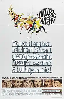 The Music Man is a 1962 American musical film directed by Morton DaCosta and based on the 1957 Broadway musical of the same name by Meredith Willson, which DaCosta also directed. Robert Preston reprises his role as Harold Hill from the musical, starring alongside Shirley Jones, Buddy Hackett, Hermione Gingold, and Paul Ford. Released on June 19, 1962, the film was one of the biggest hits of the year and was highly acclaimed critically.