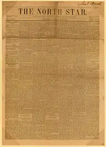 The North Star was a nineteenth-century anti-slavery newspaper published from the Talman Building in Rochester, New York, by abolitionist Frederick Douglass.[1] The paper commenced publication on December 3, 1847, and ceased as The North Star in June 1851, when it merged with Gerrit Smith's Liberty Party Paper (based in Syracuse, New York) to form Frederick Douglass' Paper.[2] The North Star's slogan was: "Right is of no Sex—Truth is of no Color—God is the Father of us all, and all we are Brethren."[3][4]