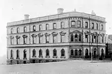 The Northern Club building has a long history of association with Auckland's social elite. Built in 1867 as the Royal Hotel, it became a gentlemen's club two years later. Originally designed by Edward Mahoney,[8] the three-storeyed building was located in a prestigious part of the settlement, close to the former Government House and provincial council. It was erected in a fashionable Italianate style, the brick structure being rendered externally to appear masonry-built. As the Royal, it replaced a timber structure of the same name and gained a reputation as the grandest establishment in town. Early tenants included the provincial government, which rented rooms as offices, and the Auckland Institute and Museum, while part of the first floor was a British army officers' mess used by soldiers from the nearby Albert Barracks.