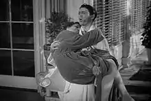 The Philadelphia Story is a 1940 American romantic comedy film[2][3] directed by George Cukor, starring Cary Grant, Katharine Hepburn, and James Stewart, and featuring Ruth Hussey. Based on the 1939 Broadway play of the same name by Philip Barry,[4] the film is about a socialite whose wedding plans are complicated by the simultaneous arrival of her ex-husband and a tabloid magazine journalist. The socialite character of the play—performed by Hepburn in the film—was inspired by Helen Hope Montgomery Scott (1904–1995), a Philadelphia socialite known for her hijinks, who married a friend of playwright Barry.[5]