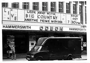 In March 1986, The Prime Movers embarked on a 15 date UK Tour as special guests of Big Country. "The Seer" Tour was buoyed by the strength of a number seven charting single, "Look Away," and all shows were sold out including two packed nights at London's fabled Hammersmith Odeon. The tour was a huge success and The Prime Mover's "Dark Western Night" was repackaged by Island as a twelve-inch, yellow vinyl, double set with record two being live recordings from the tour.