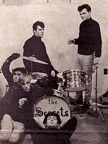 Late in 1965, the band started out as the house act at the Pressmen's Club, performing under the name the Secrets, with a line-up which featured Doug Rankine (lead vocals, rhythm guitar), Bob Mark (lead guitar), Henry S. Thaler (electric piano), Mike Woodruff (bass guitar), and Rick Felstead (drums).[1] Record producer Brian Macfarlane approached the Secrets with a proposal, in early 1966, to record a novelty song he had composed for Toronto Maple Leafs player Eddie Shack, who was enjoying a breakout season at the time. Titled "Clear the Track, Here Comes Shack", the single, backed by the lesser-known "Warming the Bench", was a simplistic, but catchy tune which was released on Canada International, and became a huge commercial success on Toronto's CHUM Charts, where it peaked at number one for two weeks.[2] Rankine, who thought the song was a gift specifically for Shack, recalled the circumstances surrounding its release: "We didn’t know it was going to be released as a single and played across the entire country. Once it was released, we thought (or hoped) it would just disappear into the night and nobody would care about it. As fate would have it, it didn’t disappear. For some reason people loved it".[3]