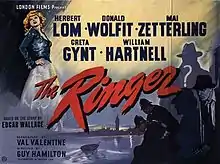 The Ringer is a 1952 British mystery film directed by Guy Hamilton and starring Herbert Lom, Donald Wolfit, Mai Zetterling, Greta Gynt, William Hartnell, and Denholm Elliott.[1] It was Hamilton's directorial debut and the third talkie version of Edgar Wallace's 1929 play.[2][3][4]