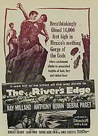 The River's Edge is a 1957 film noir adventure, crime, and drama DeLuxe CinemaScope film directed by Allan Dwan and starring Ray Milland, Anthony Quinn and Debra Paget. The picture is based on the unpublished short story "The Higher Mountain" by Harold Jacob Smith.[1] Location filming was done in Amecameca and Iztaccihuatl in Mexico.[2] The supporting cast features Harry Carey, Jr. and Chubby Johnson.