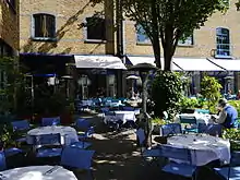 The restaurant is located on the north bank of the Thames in Hammersmith, in the former Duckhams oil storage facility; the nearest railway station being Hammersmith tube station. The facility was modified to alternative use by architect Lord Rogers, the husband of Ruth Rogers (Lady Rogers). The restaurant originally opened in 1987[1] as the employee café of the architectural partnership. The restaurant has a garden area with views of the River Thames.