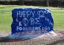 The Rock is a boulder on the campus of Michigan State University. Once popular as a trysting site, today it serves as a billboard for campus groups and events.