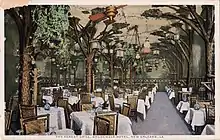 As early as 1900, Grunewald began plans and eventually construction of an 'Annex' tower on the University Place side of the block. The cost of the new tower was reportedly $2.5 million and was considered one of the finest in the country. The new tower was 14 stories tall and had 400 rooms. Its grand opening was at Midnight, January 1, 1908. This expansion was designed by the architectural firm, Toledano & Wogan.[2] Louis Grunewald's son Theodore became the Director and Manager of the Hotel. The lobby of the Annex featured a large Italian Marble staircase which reached an overlooking mezzanine level of the hotel. The Annex Tower allowed the addition of several entertainment and dining facilities. Among the new options were the Forest Grill, The Lounge, The Fountain Grill and the most famous, The Cave. The Cave was designed to mimic a cavern complete with waterfalls, stalactites, glass topped tables and statues of gnomes and nymphs. Revues similar to the Ziegfeld Follies were presented on a nightly basis.