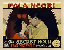 The Secret Hour is a lost[1] 1928 silent film romance drama directed by Rowland V. Lee and starring Pola Negri. It is based on the 1924 Broadway play, They Knew What They Wanted by Sidney Howard.[2] It was produced by Paramount Famous Lasky Corporation and distributed through Paramount Pictures.[3][4]