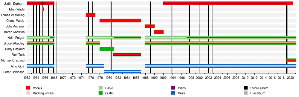 - Judith Durham – lead and backing vocals, piano (1962–1968, 1992–present)