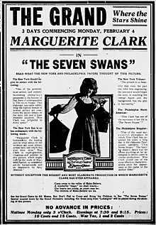 The Seven Swans is a lost[1] 1917 silent film fantasy starring Marguerite Clark. Famous Players Film Company produced and J. Searle Dawley directed.[2]