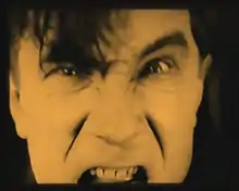 The Silent Command was Lugosi's first American film, and influenced the direction of his career in cinema.[2] Lugosi had expressed an interest in playing Latin lover characters in the model of Rudolph Valentino, but his performance as Hisston revealed him to be convincing in more villainous roles.[37] According to Rhodes, critics considered the focus on Lugosi's eyes cliché or even unintentionally humorous, but some filmgoers did find the shots genuinely frightening.[38] This technique, showing Lugosi's eyes in extreme close-up, would be revisited in many of his later films,[9][39] such as The Midnight Girl, Dracula, and White Zombie.[10][40] Images of Lugosi's eyes were eventually even used in advertising.[39]