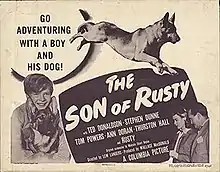 The Son of Rusty is a 1947 American drama film directed by Lew Landers and starring Ted Donaldson, Stephen Dunne and Ann Doran. It was part of Columbia Pictures' eight-film Rusty series about a boy and his valiant German Shepherd.[1]