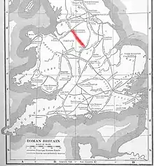 The Street is the medieval name of the Roman road that ran across the high limestone plateau of central Derbyshire from the spa town of Buxton (Latin Aquae Arnemetiae) southeast towards modern Derby. The line of the road can be traced from surviving features, confirmed by archaeology, from Buxton as far as Longcliffe just north of Brassington. It is believed that from Brassington the road ran eastwards to Wirksworth and there joined another road which crossed the Derwent at Milford and ran on the east bank of the Derwent and can be traced to the northern suburbs of Derby to Little Chester, the site of the Roman settlement of Derventio. The 1723 map of Brassington Moor shows The Street road from Buxton through Pikehall up to the Upper Harborough Field Gate, leading onto Manystones Lane & Brassington Lane towards Wirksworth (probable site of the Roman town Lutudarum). In records from 1613 the road from Brassington to Wirksworth is called 'Highe Streete'.[1][2]