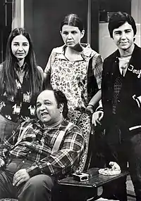 ![]() Richard S. Castellano (seated) as Joe Girelli in The Super in 1972. Standing left to right are Margaret Castellano as Joanne Girelli, Ardell Sheridan as Francesca Girelli, and Bruno Kirby as Anthony Girelli. | |