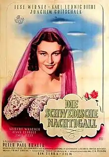 The Swedish Nightingale (German: Die schwedische Nachtigall) is a 1941 German musical film directed by Peter Paul Brauer and starring Ilse Werner (singing sequences with Erna Berger's voice), Karl Ludwig Diehl, and Joachim Gottschalk.[1] The film is based on a play by Friedrich Forster-Burggraf set in nineteenth century Copenhagen. It portrays a romance between the writer Hans Christian Andersen and the opera singer Jenny Lind, the "Swedish Nightingale" of the title.