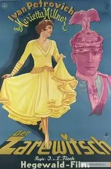 The Tsarevich (German: Der Zarewitsch) is a 1929 German silent historical film directed by Jacob Fleck and Luise Fleck and starring Iván Petrovich, Marietta Millner and Albert Steinrück.[1] The film's sets were designed by Willi Herrmann.