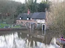 Bearing the distinctive slogan "Unspoilt by Progress" in large letters painted directly underneath its name sign on the front of the building, The Boat Inn[7] is today, one of only 3 pubs remaining in the Jackfield area, and the only one in the Tuckies part of Jackfield. It regularly floods when river water rises, sometimes almost as high as the entrance door, but peculiarly, the rising water tends to emerge first through its quarry tiled floor as a result of a raised water-table level. This has the effect of opposing the dirty river water rising on the outside and although still destructive, is something that landlords and regular customers have become accustomed to. The Ironbridge Gorge Pub Guide contains a number of photographs of The Boat Inn during times of flood and a 1925 photograph of the footbridge during a time of flooding shows The Boat Inn heavily flooded on the right as well as The Duke of Wellington Inn on the far left behind the telegraph pole, as well as the Brewhouse and old Engine House at higher elevations in the Tuckies. The 1871 trade directory for the Broseley parish [8] lists Amt Oswell as the tradesperson at the Boat Inn as well as being a shopkeeper at Tuckies. The Boat Inn's own web site http://www.boatinnjackfield.com/about.html gives more details about the current landlady, Jenny Alexander, as well as regular activities and live music events held in the summer on their outdoor, riverside stage.