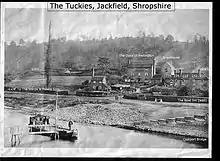 The Tuckies, an old mansion, stands (52°37′09″N 2°27′26″W) on slopes rising from the southern bank of the river Severn, opposite Coalport. It is shown on a map, "Brosely in 1620"[7] and in the early 19th Century it was described as a small yet valuable estate, containing coal mines which are far from being exhausted though they have been worked at different periods, for the last two centuries. Apart from discussing the peculiar nature of the stratum of coal found here, the reference goes on to say that much iron is made on this side of the river at the furnaces belonging to Messrs. Hazledine of Shrewsbury, and Messrs. Forster.