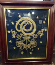 ![]() The battle flag of the UTA: one of the earliest recorded uses of a rattlesnake on a flag, pre-dates the Gadsden Flag, this restored example from the early 1800s[1] | |