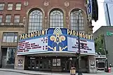 As soon as the tour was announced, tickets were sold out almost everywhere.[29] In San Francisco, tour shirts were selling at a clocked rate of one every six seconds. All 17,672 tickets for Madonna's show at New York City's Radio City Music Hall were completely sold out in a record-breaking 34 minutes.[29] Both the shows at Chicago's UIC Pavilion were sold in a single day with a record-breaking 18,000 tickets being sold.[30] In Philadelphia, a record-breaking 31,000 tickets were sold in under four hours.[30] Along with ticket sales, merchandise associated with the tour also sold rapidly. T-shirts, posters and promo-magazines featuring Madonna's image were picked up by the fans, even though most them were overpriced compared to the market value.[31] After its end, the Virgin Tour was reported to have grossed over $5 million ($11.89 million in 2019 dollars[1]), with Billboard Boxscore reporting a gross of $3.3 million ($7.84 million in 2019 dollars[1]).[31]