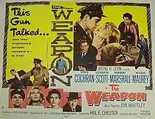 The Weapon is a 1956 British thriller film directed by Val Guest and starring Steve Cochran, Lizabeth Scott, Herbert Marshall, and Nicole Maurey. It was made by Republic Pictures.[1] Its themes were originally explored in the 1951 British film The Yellow Balloon.[2]