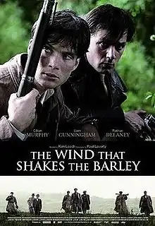 The Wind That Shakes the Barley is a 2006 war drama film directed by Ken Loach, set during the Irish War of Independence (1919–1921) and the Irish Civil War (1922–1923). Written by long-time Loach collaborator Paul Laverty, this drama tells the fictional story of two County Cork brothers, Damien O'Donovan (Cillian Murphy) and Teddy O'Donovan (Pádraic Delaney), who join the Irish Republican Army to fight for Irish independence from the United Kingdom.