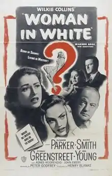 The Woman in White is a 1948 drama film directed by Peter Godfrey which stars Alexis Smith, Eleanor Parker, Sydney Greenstreet, and Gig Young. The screenplay is based on Wilkie Collins' 1860 novel The Woman in White.[1]