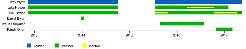 | Members | Bray Wyatt (leader) Erick Rowan Luke Harper Daniel Bryan Braun Strowman Randy Orton |